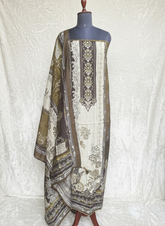 BROWN SEMI MUSLIN SALWAR MATERIAL - 30283