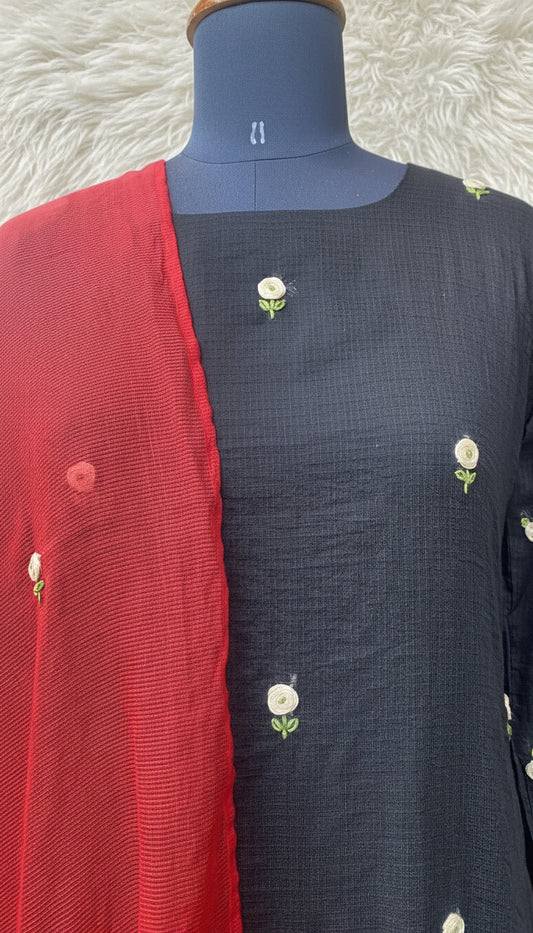 BLUE MUSLIN FULL SET SALWAR MATERIAL - clt777 (KAFTHAN TYPE STITCHABLE)