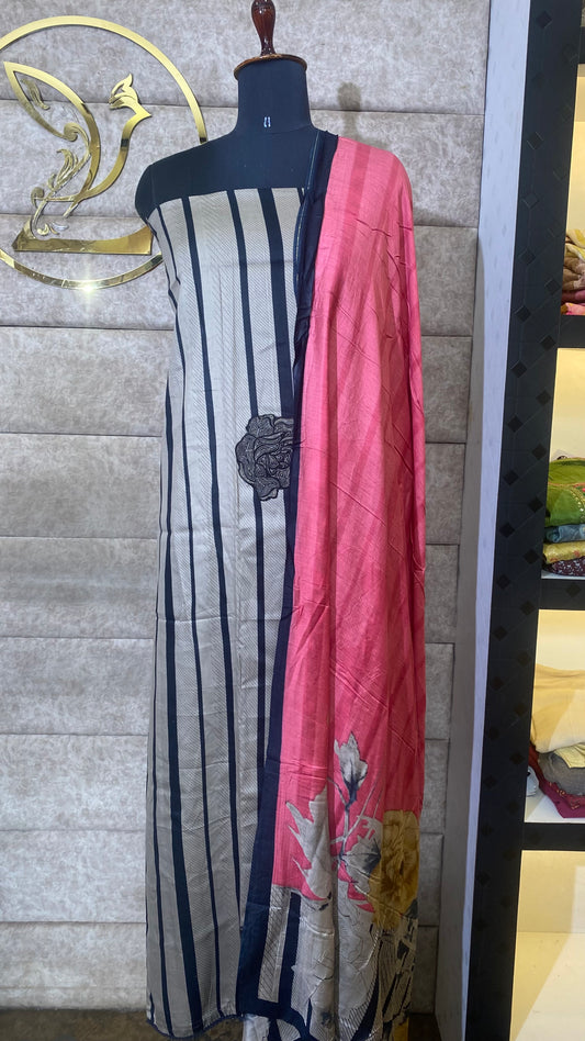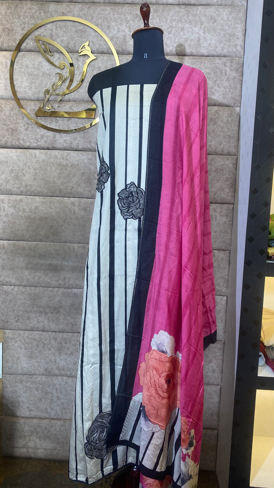CAMBRIC COTTON BEIGE & ROSE FULL SALWAR MATERIAL- 30565