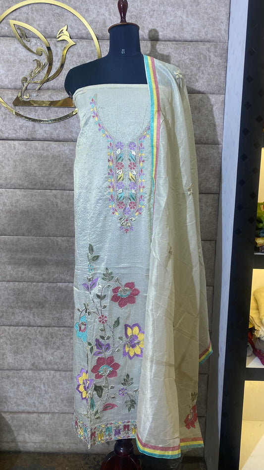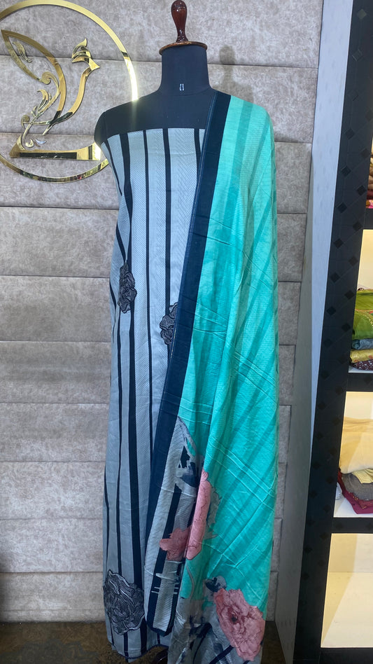 CAMBRIC COTTON ASH & GREENFULL SALWAR MATERIAL- 30565