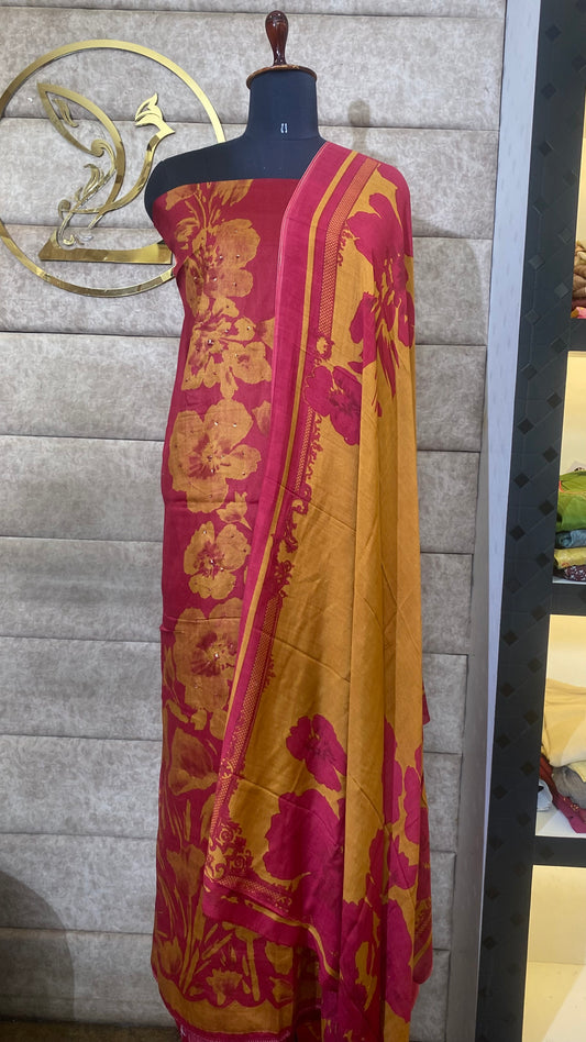COTTON RANI PINK & MUSTARD YELLOW FULL SALWAR MATERIAL - 30564