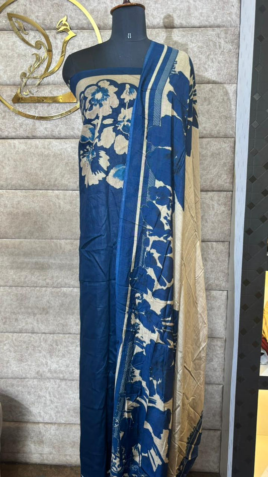 COTTON NAVY BLUE AND CHIKKU FULL SALWAR MATERIAL - 30564