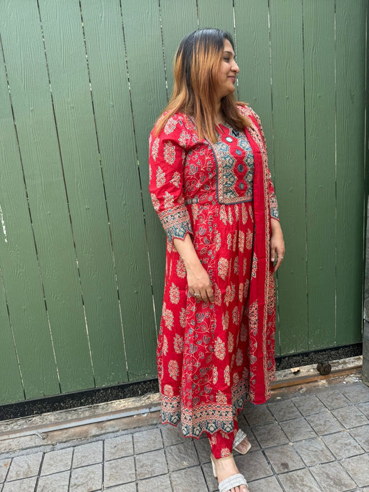 COTTON RED FULL SALWAR SET- 30611 (PREBOOKING: DISPATCH AFTER 25 DAYS)