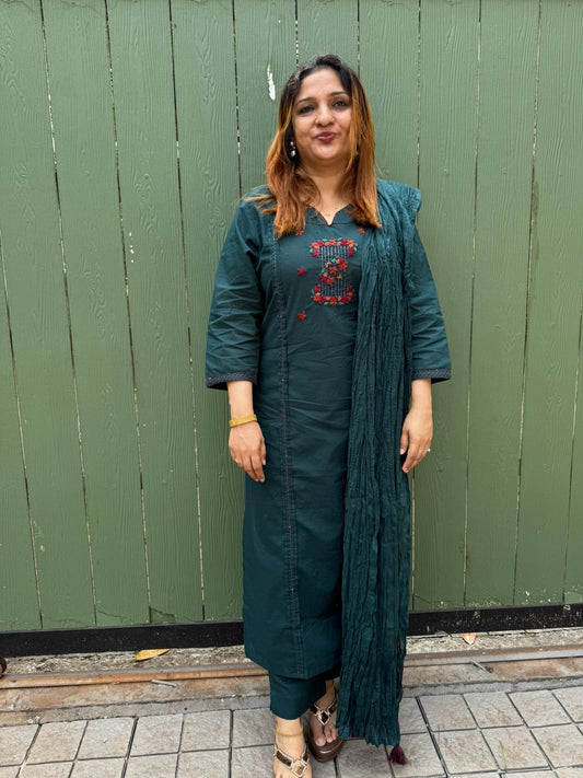 DARK GREEN COTTON FULL SALWAR SET - 30639