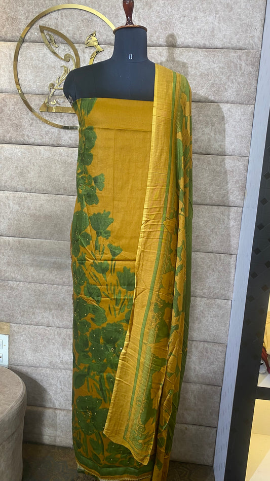 COTTON MUSTARD YELLOW AND GREEN FULL SALWAR MATERIAL - 30564