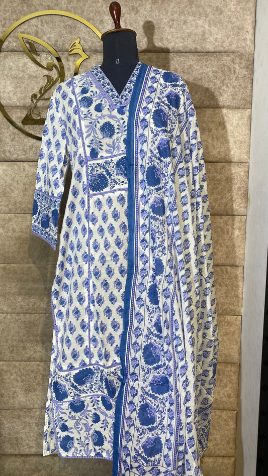 COTTON POWDER BLUE FULL SALWAR MATERIAL - 30572