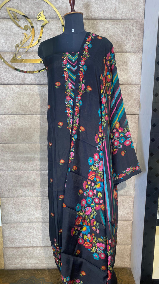 RAYON BLACK PAKISTANI FULL SALWAR MATERIAL - 30651