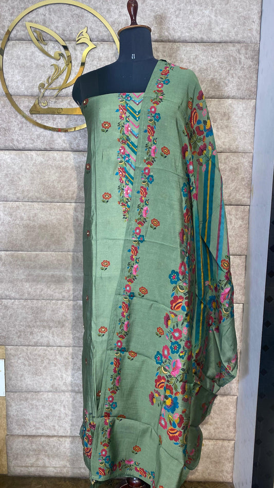 GREEN SEMI MUSLIN FULL SALWAR SET - 30656
