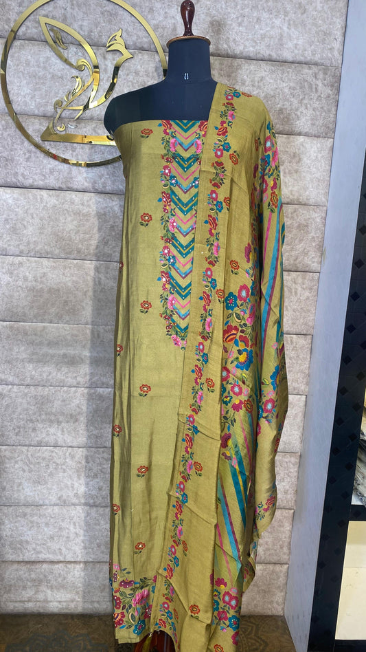 RAYON WINE PAKISTANI FULL SALWAR MATERIAL - 30651