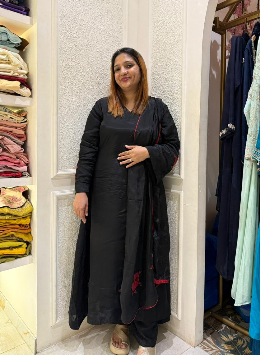 BLACK SATIN SILK FULL SET SALWAR -30562