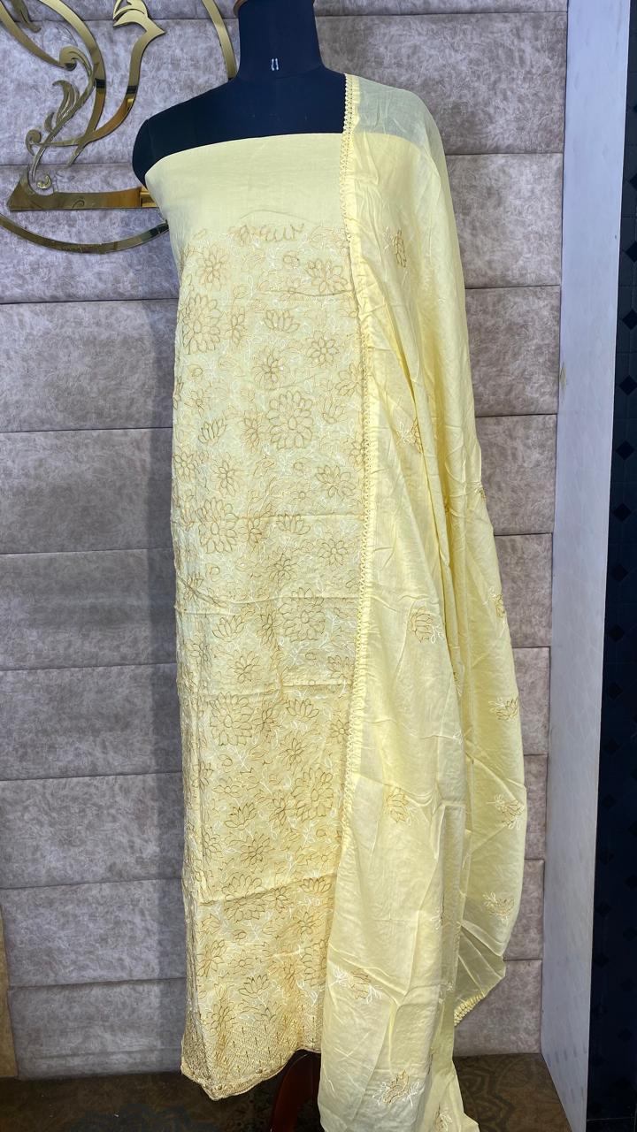 COTTON PASTEL YELLOW FULL SALWAR MATERIAL- 30577