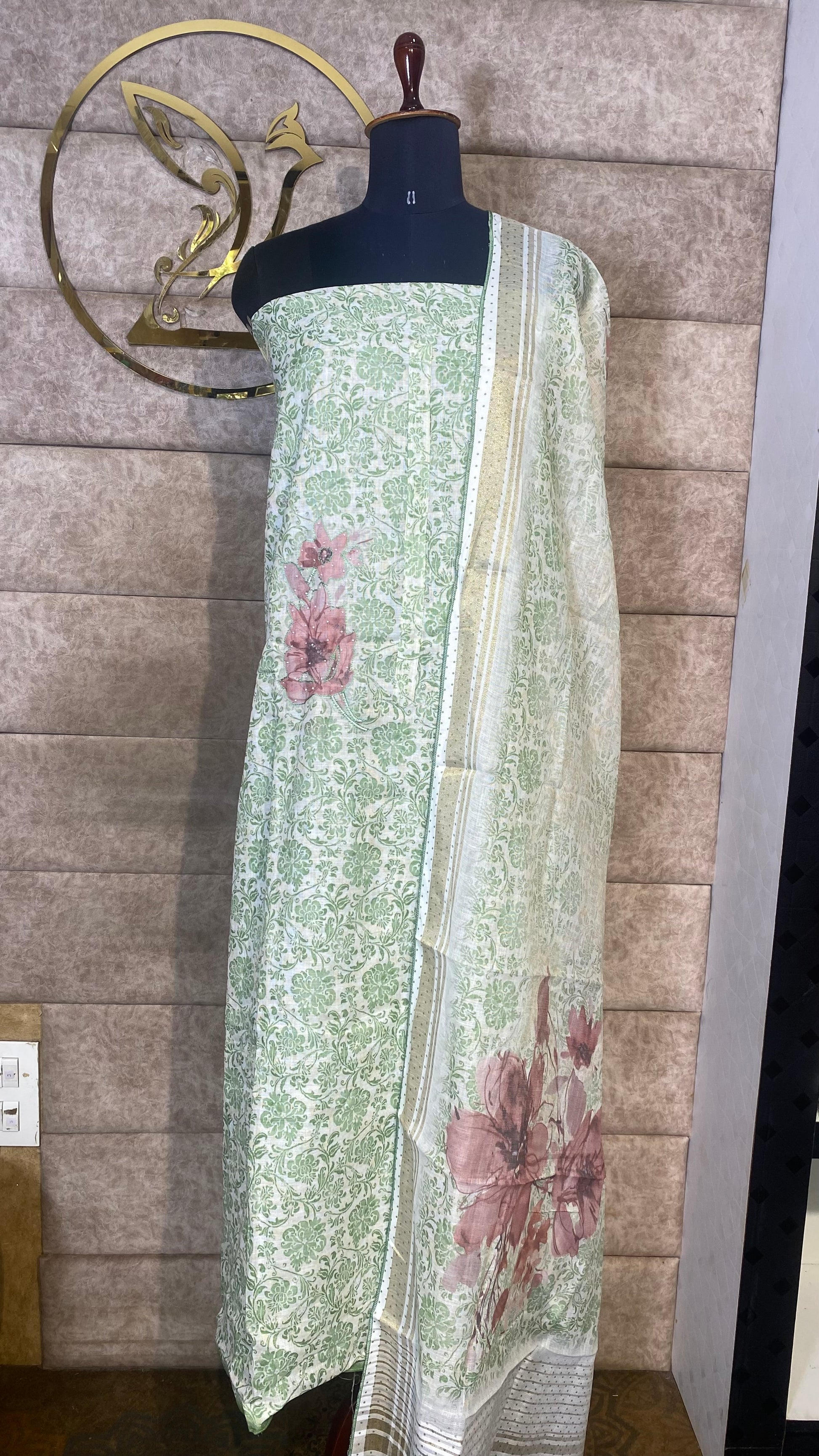 LINEN MIX WHITE & GREEN FULL SALWAR MATERIAL - 30584