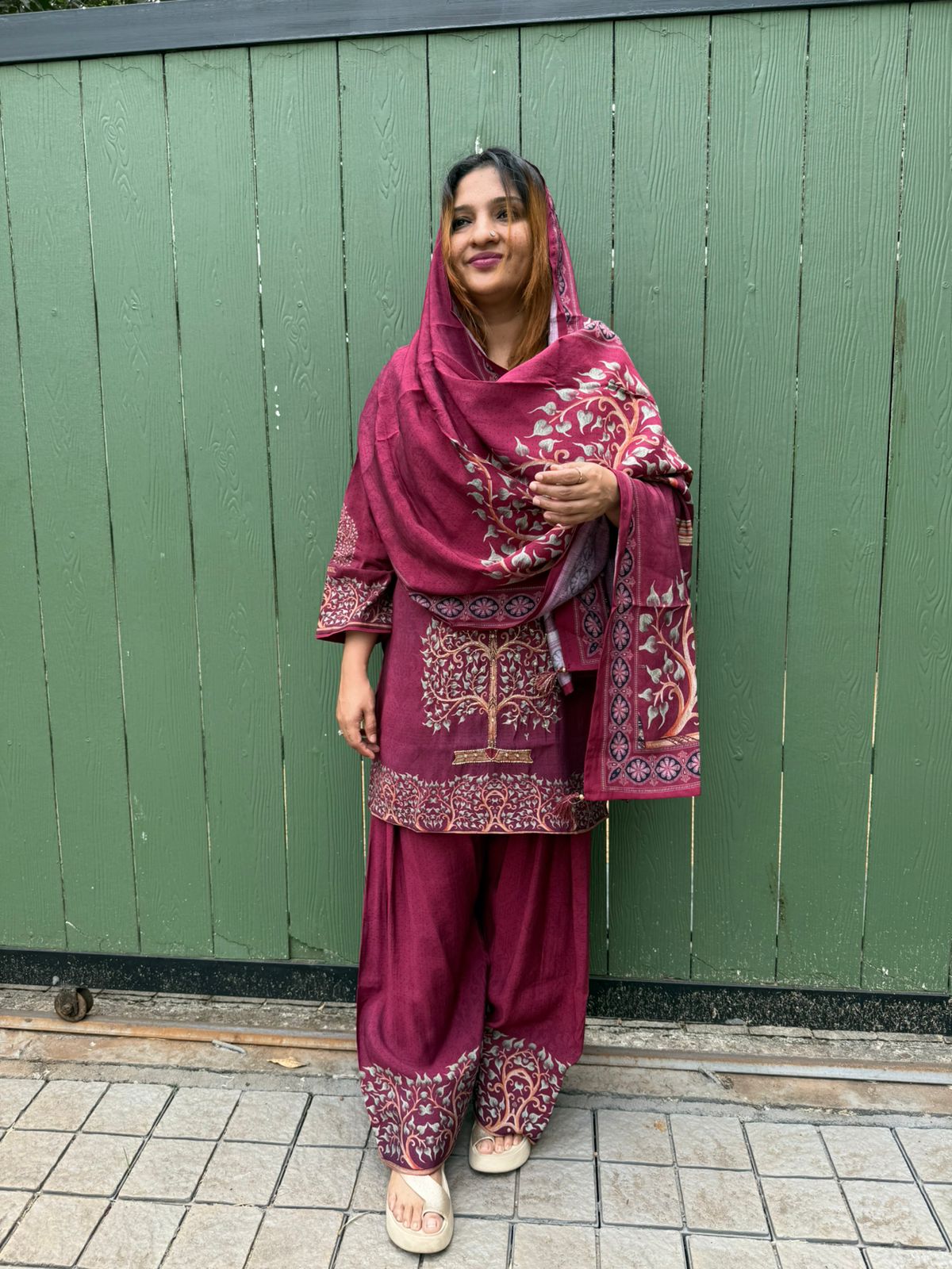 MAROON MUSLIN FARSHI FULL SALWAR SET - 30594