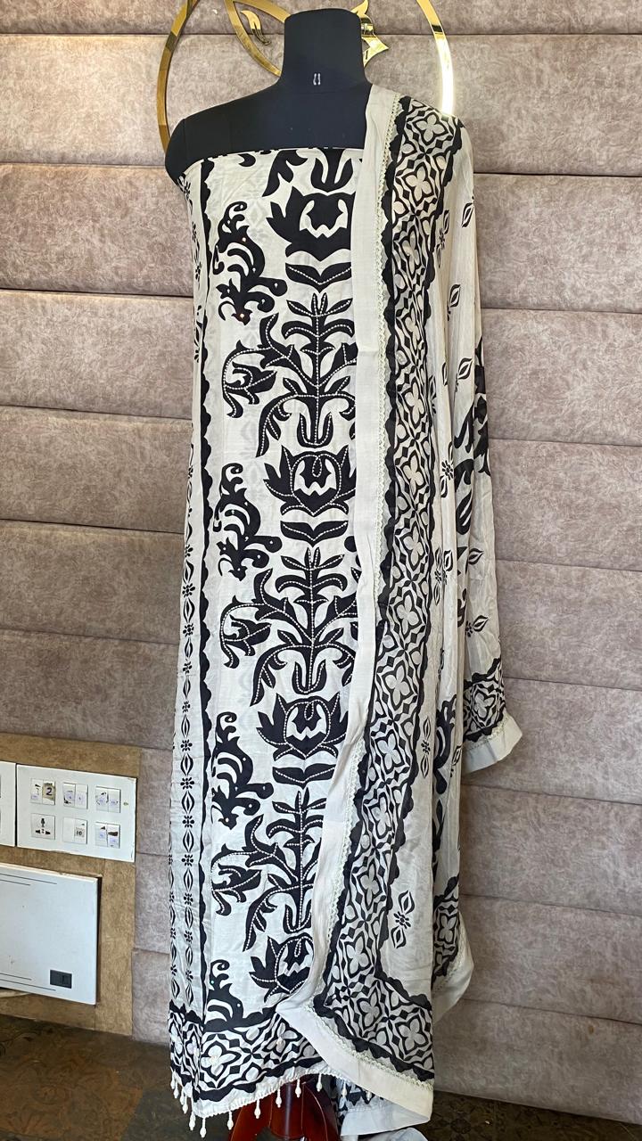 Overall style: The contrast of white and black, combined with traditional motifs, makes this salwar set look sophisticated and timeless, suitable for festive occasions, casual gatherings, or elegant day wear.